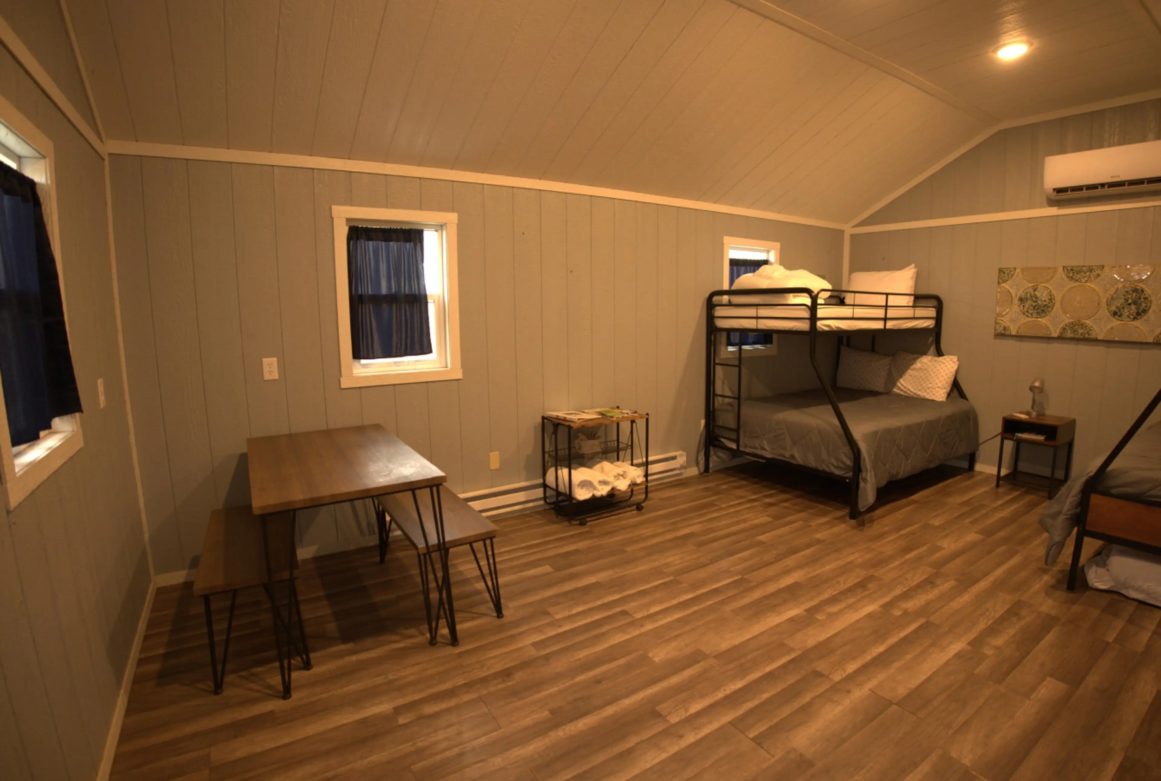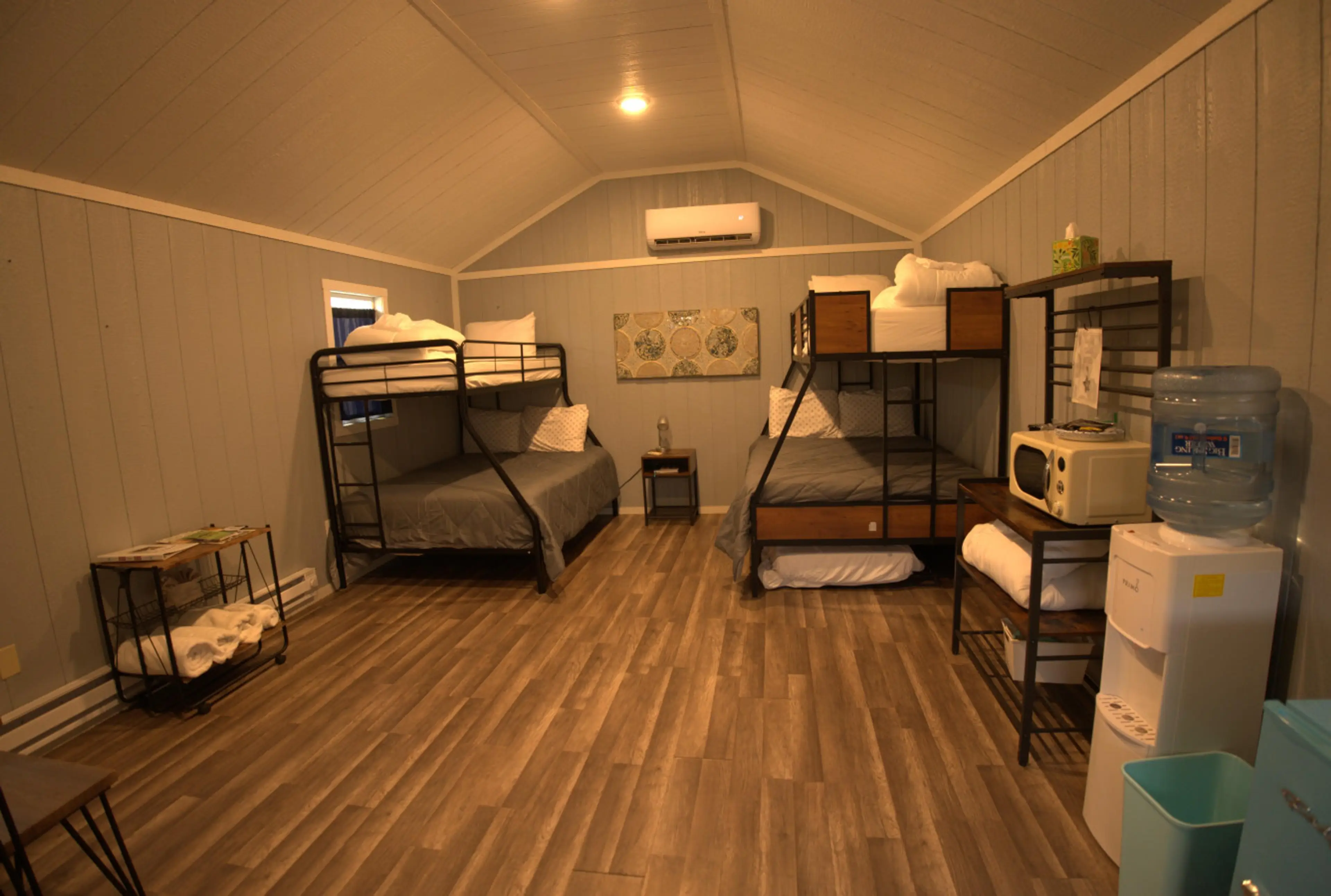 Cabin 4 is our family and friends cabin. There are two bunk beds inside with Full bottoms and twin tops.
